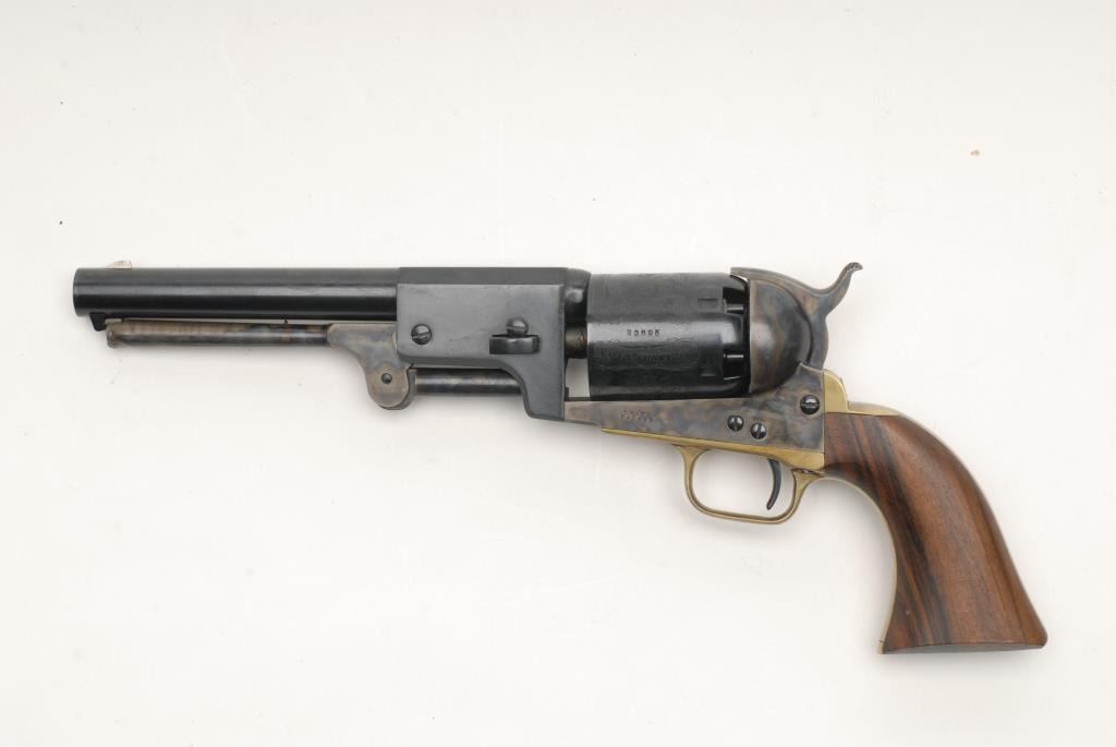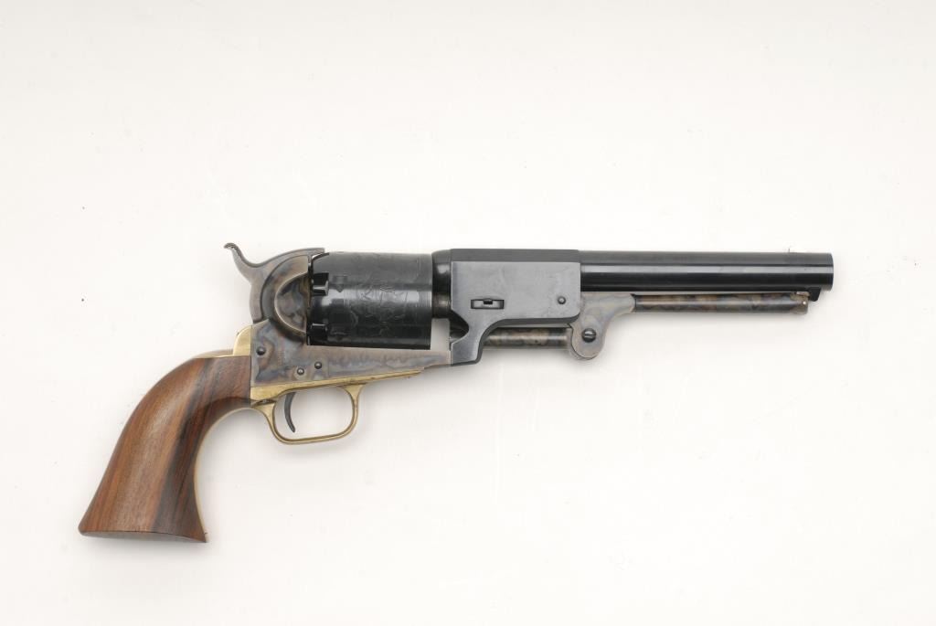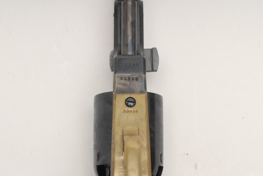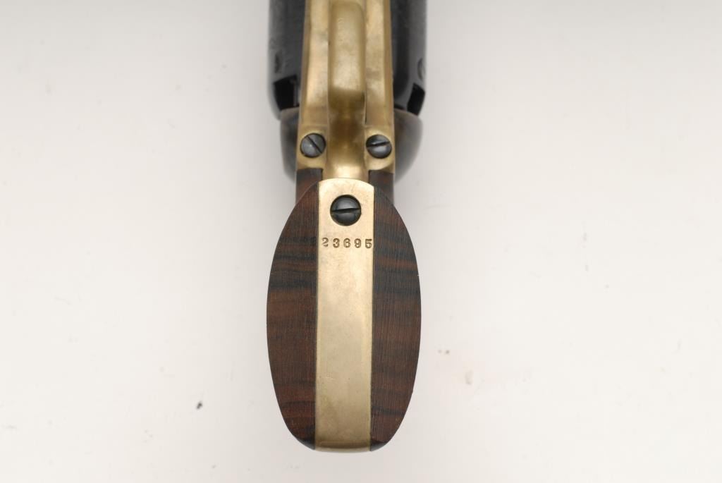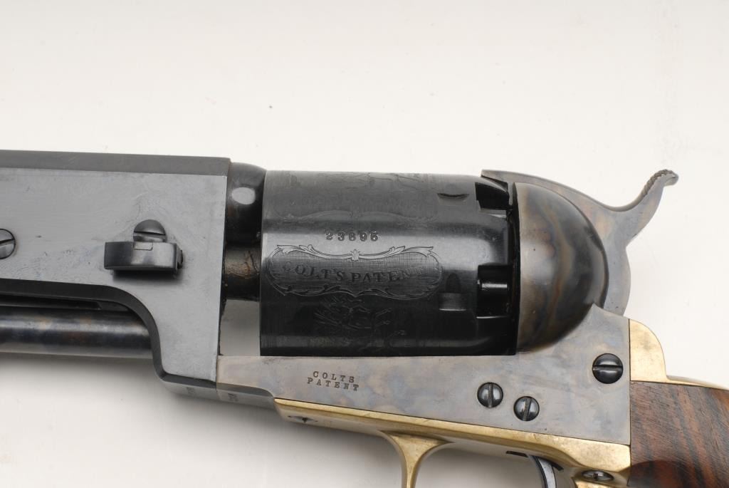 Colt New Blackpowder Third Model Dragoon percussion revolver, .44 caliber, 7.5” barrel, S/N 23695, in like new condition showing little handling; accompanied by a factory wood grained cardboard box and inserts. Est.: $350-$700.