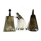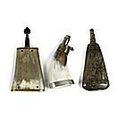 Lot of Three Horn Powder Flasks, Includes a 5.5" engraved 18th century German made example with hunting scenes, female figure and inscriptions. A plain flat horn flask with carved wood stopper. A 19th century example with adjustable brass spout and nickel base is also included. Good. Light normal age toning. Est:$300-500