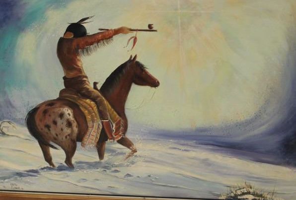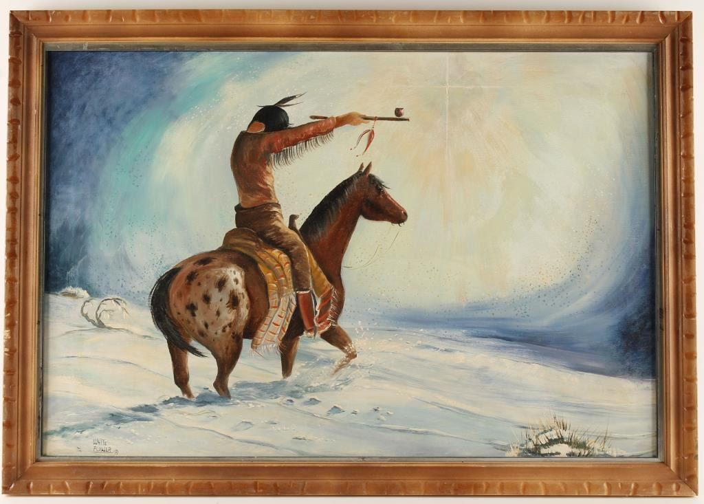 Lot 964 Watercolor on Board signed White Flower. Depicts Chief. 14" x 11", Est:$100-200