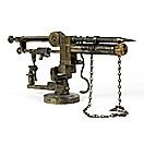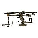 International Arms Mounted Spear Trap Gun 18" x 8", brass, adjustable and mounted on a rotating base. Maker marked "INTERNATIONAL ARMS / PROVINCE DU QUEBEC CANADA." Complete with spear and attachment chain. EST:$600-1,200