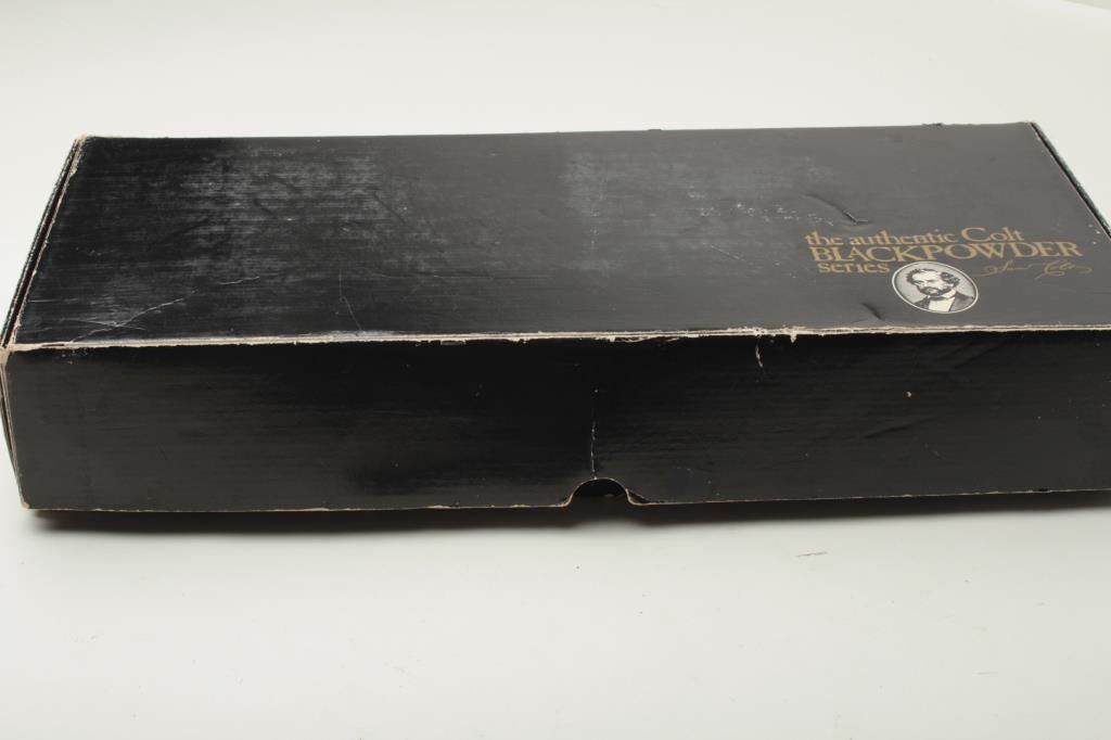 Colt Blackpowder Series Model 1860 Army percussion revolver, .44 caliber, 8” barrel, S/N 205480, blued and case hardened finish, wood grips in like new condition in factory cardboard box with paperwork. (Percussion). Est.: $300-$600.
