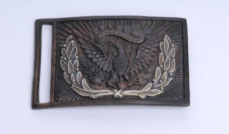 U.S. Cavalry Sergeant’s belt buckle in overall good un-cleaned condition with a dark patina and enlisted #890 stamped on the back side. Est.: $200-$400.