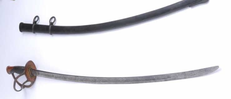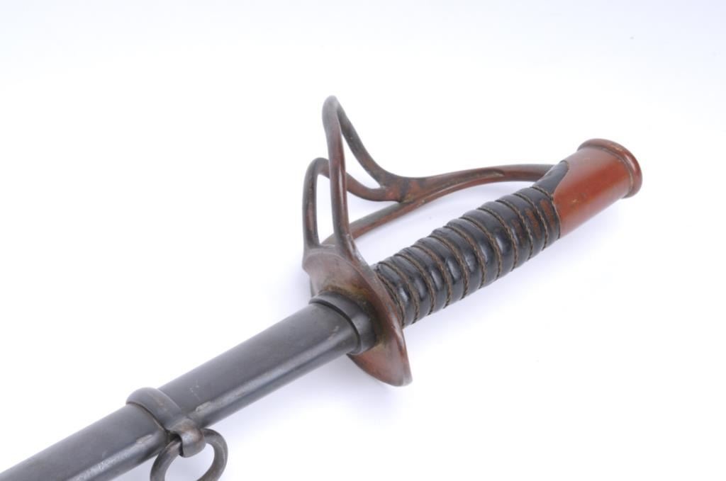 Lot 993 Civil War era Cavalry Officer’s sword and metal scabbard by D. J. Millard and dated 1862; overall