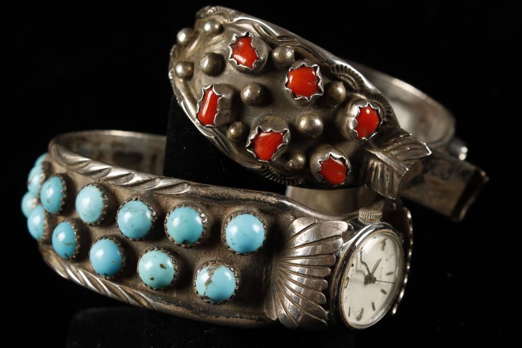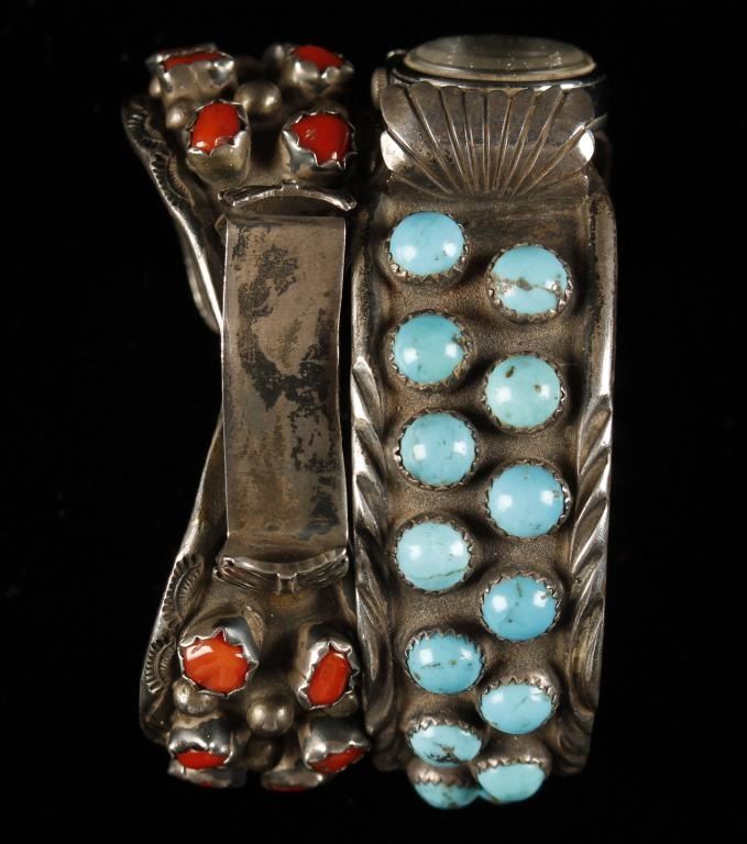 Sterling Silver Watchband, cuffs, Coral, Turquoise. Est:$200-400