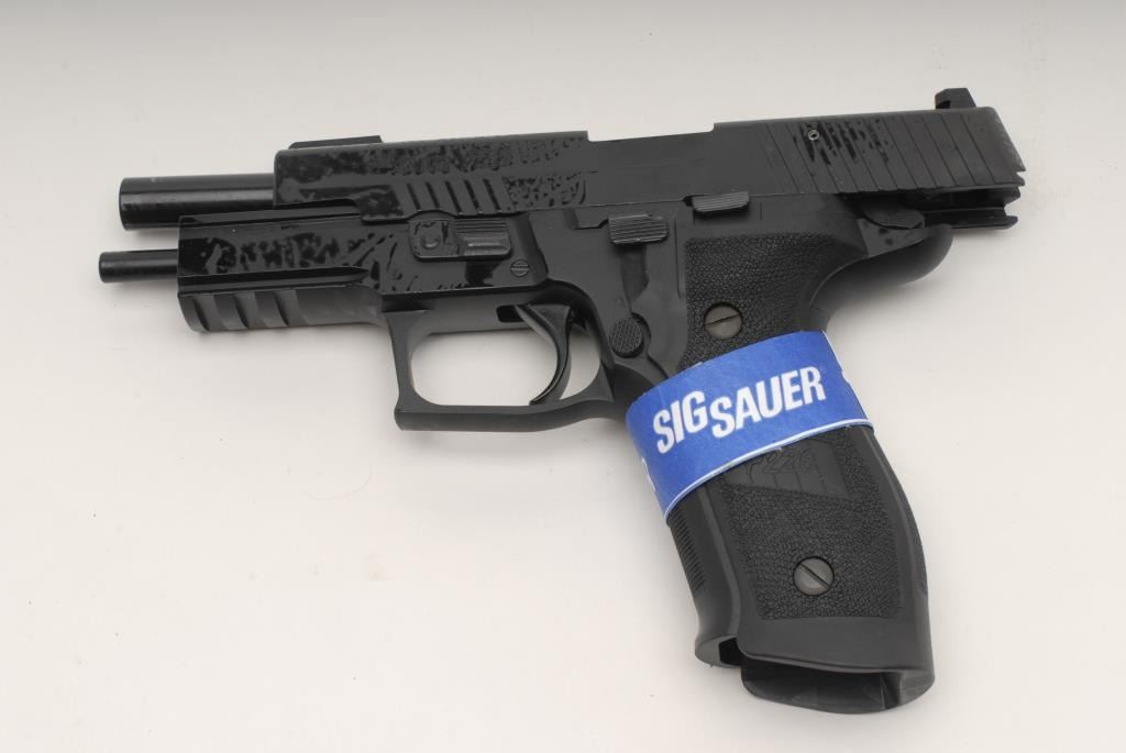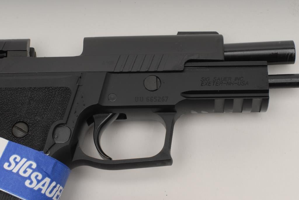 Sig Sauer P226 semi Auto Pistol, 9mm, 4 ¼”, black finish, night sights, short reset trigger, accessory rail, S/N UU665267. This pistol remains in like new condition showing little handling and no use. Original box and manual included.Consignor will ship original 4 mags to the buyer outside of CA. (No CA Sale) Est.: $700-$1400