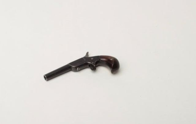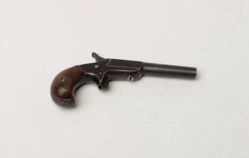 Lot 1062 Unmarked Single Shot Derringer, .22 caliber, 2.5" barrel, walnut grips. NSN., Very good condition.
