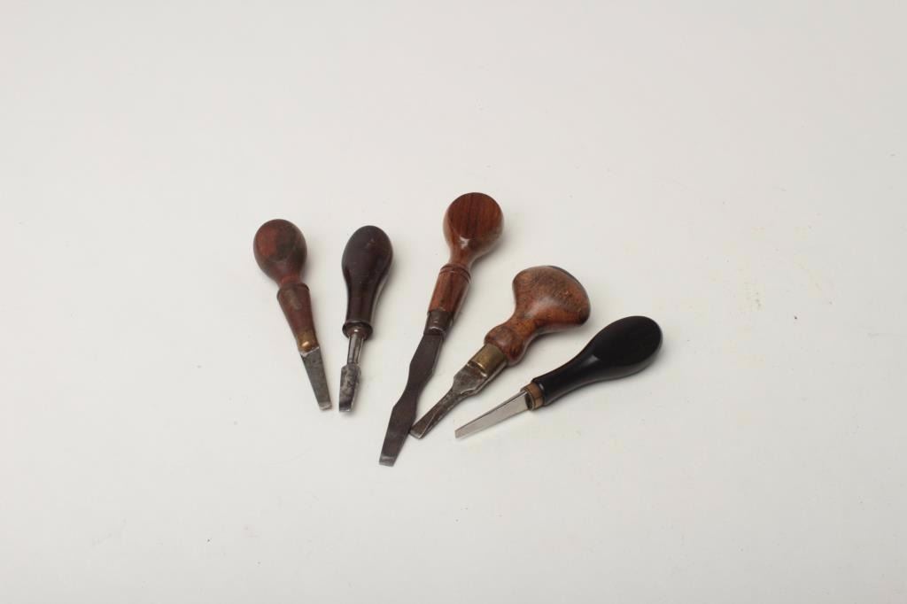 Lot 1075 19th Century Screwdrivers, Lot of 6 Steel blades of various sizes, wooden handles.Good. Shows no