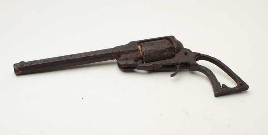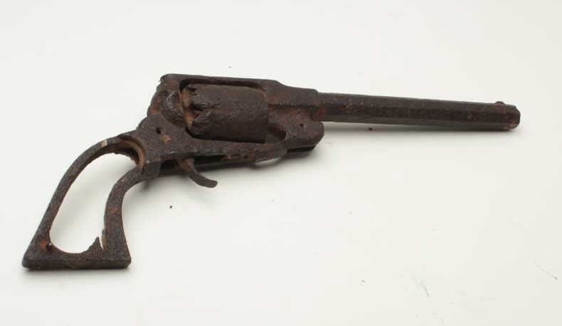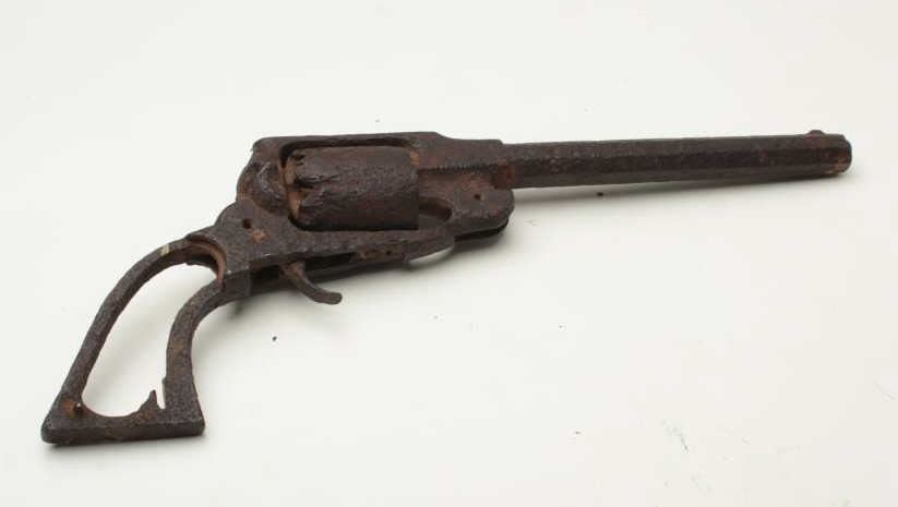Rusty relic Remington percussion revolver frame, cylinder and barrel; per consignor, found east of Bossier, LA. Est.: $250-$500.