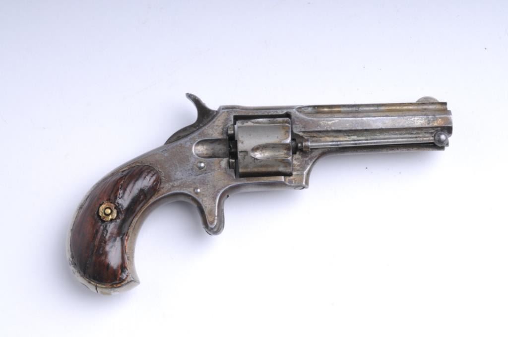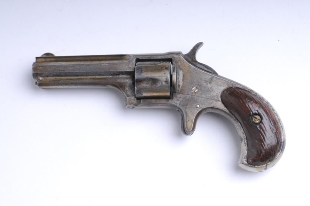 Remington Smoot .30 caliber revolver, nickel plated, and replacement wood grips with some nickel still remaining and in fair to good condition overall. The action works well and good markings. (Antique) Est.: $125-250