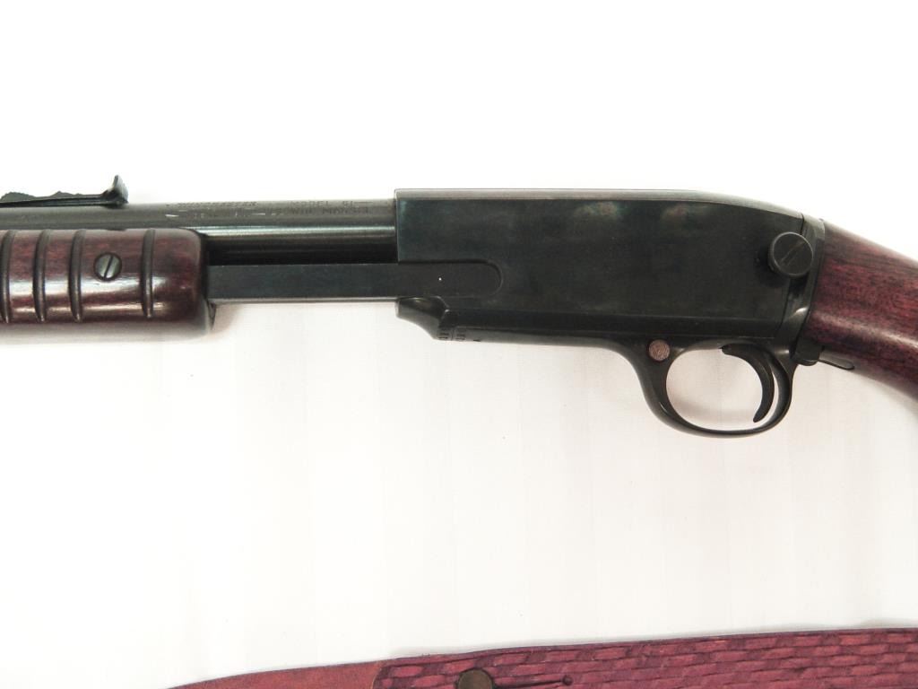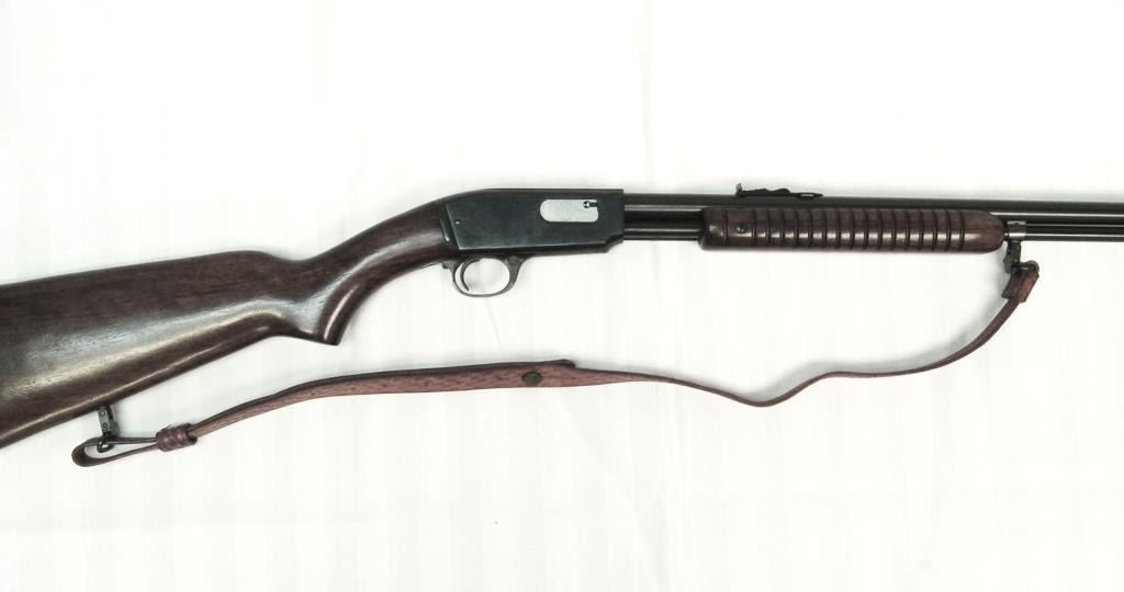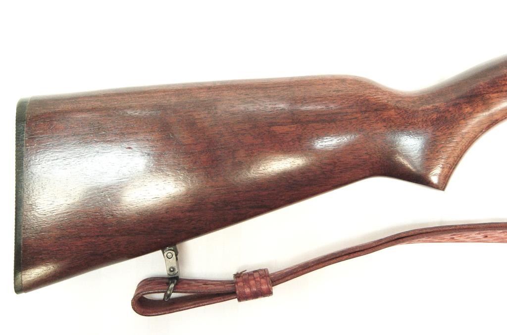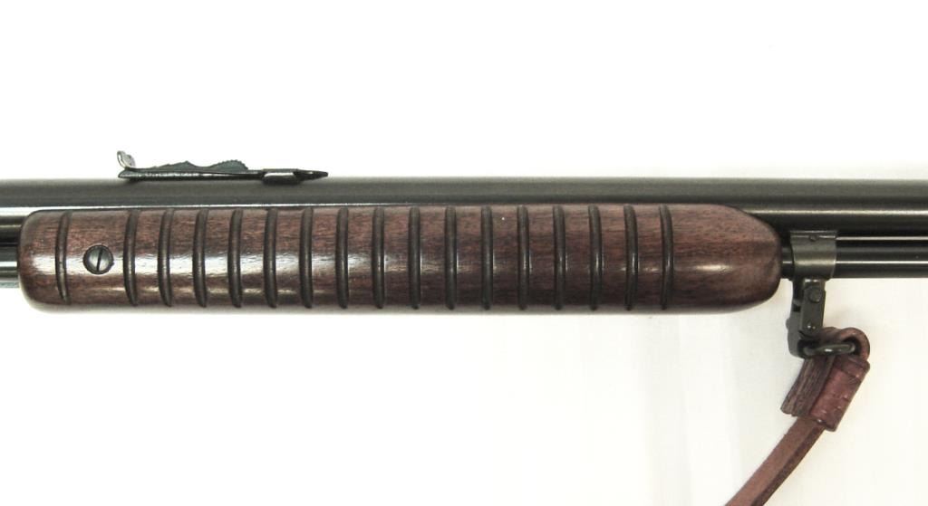 Winchester Model 61 pump action rifle, S/N 326119 in .22 Mag. Caliber with dealer added period Q.D. sling swivels and sling. 95%-98% original blue. Sharp and crisp. A beauty. (C&R) Est.: $1250-$2500
