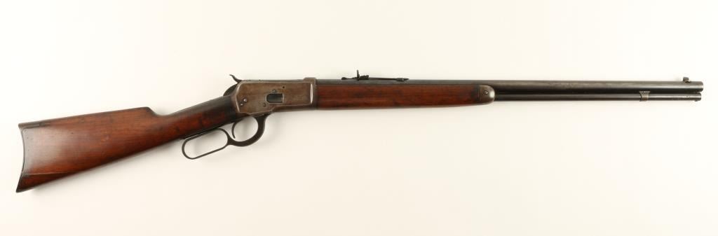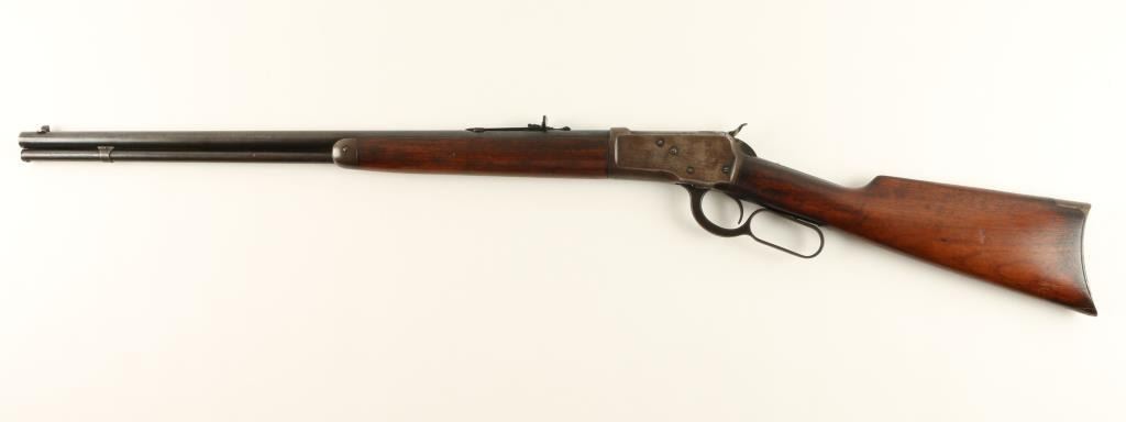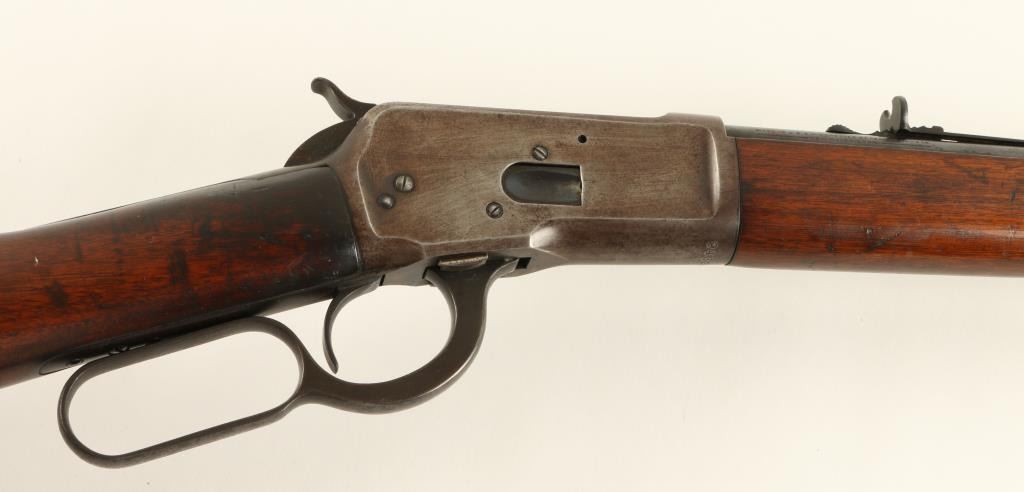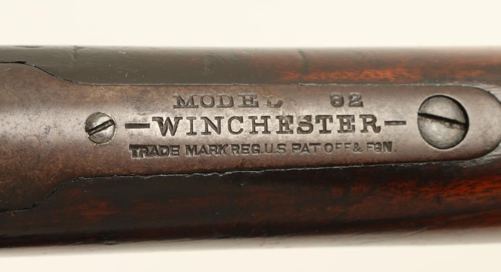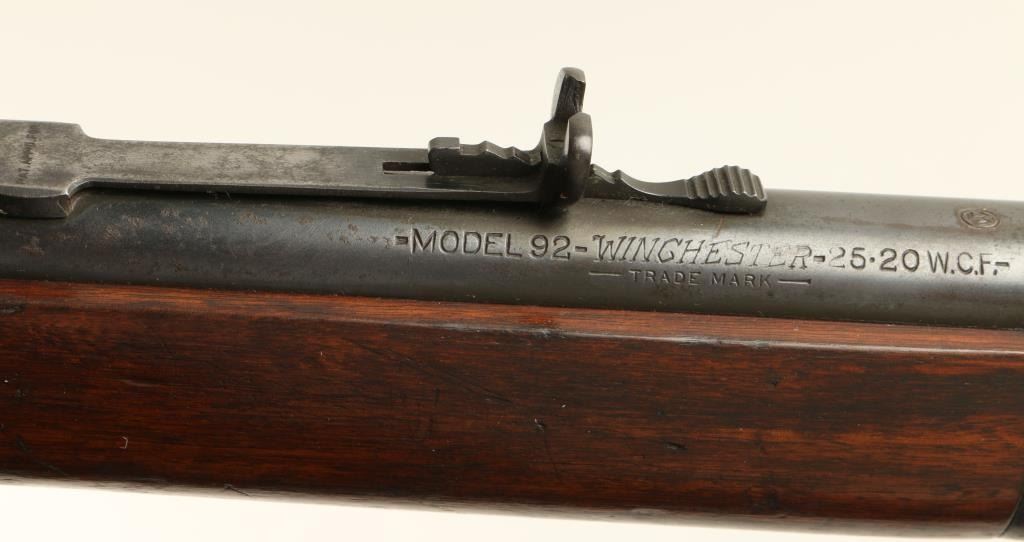 Winchester Model 92 lever action rifle, .25-20 W.C.F. caliber, 24” round barrel, S/N 948285, blued finish, wood stocks in overall good to very good condition showing areas of original blue on the barrel assembly, very good bore, crisp action, sharp markings and good wood stocks with an old repair to the bottom of the butt stock. (C&R). Est.: $800-$1,600.