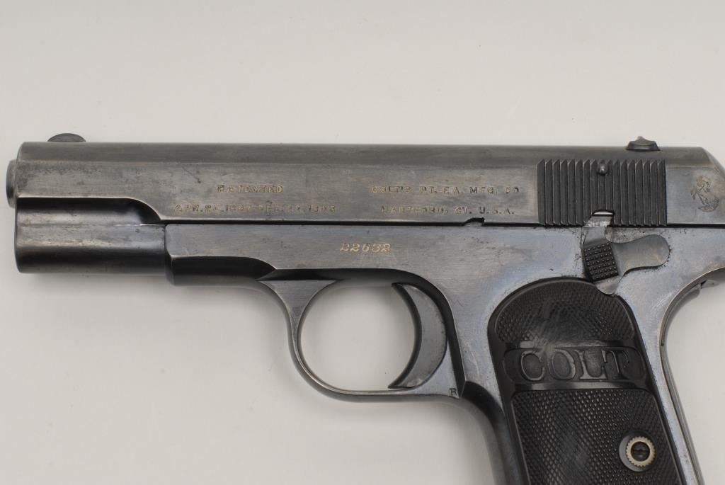 Lot 1170 Colt 1908 Semi-Auto Pistol, .380 caliber, 3 ¾” barrel, blue finish, checkered hard rubber grips, S