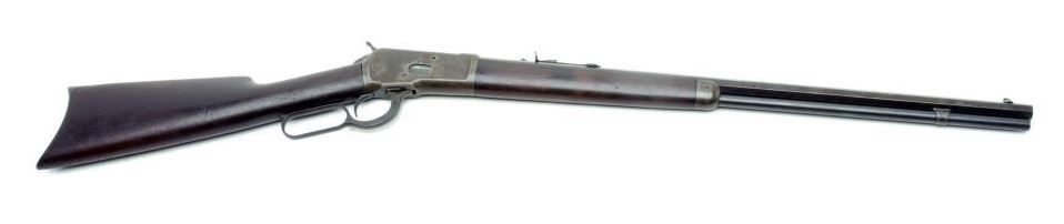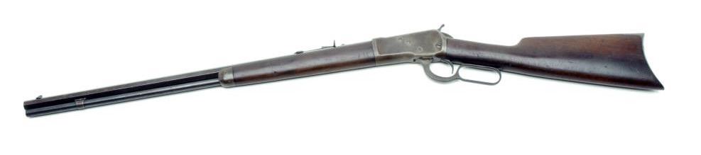 1892 Winchester lever action rifle, 25-20 W.C.F. cal., serial #765703. The rifle is in overall very good condition with a 24” octagon barrel with a post front and adjustable rear sights. The barrel and magazine retain a significant amount of their original blued finish with the balance going to a brown patina. The edges remain sharp and markings are clear. The receiver is nearly all brown with some muted case color evident on the hammer and lever. The smooth wood stocks arein very good condition with light surface mars, scratches and a metal, crescent butt plate. The bore is good, the action crisp and markings sharp on this Winchester. Est.: $800-$1,600. (C+R)