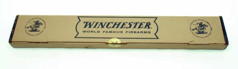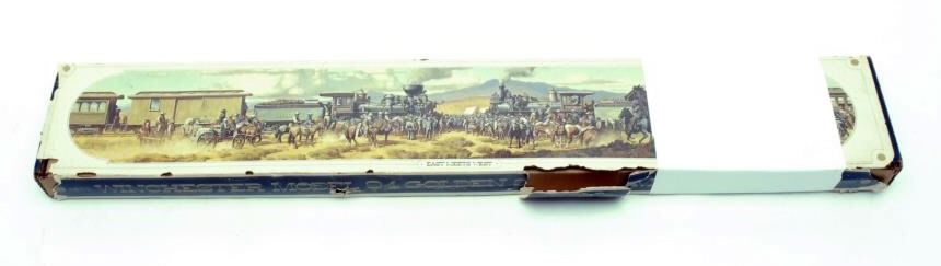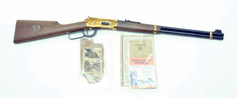 Winchester Golden Spike Commemorative lever action ’94 SRC, .30-30 Win. caliber, blued and gold finish, S/N 17195, in like new condition with factory cardboard box, sleeve and instructions. (Modern). Est.: $400-$800.