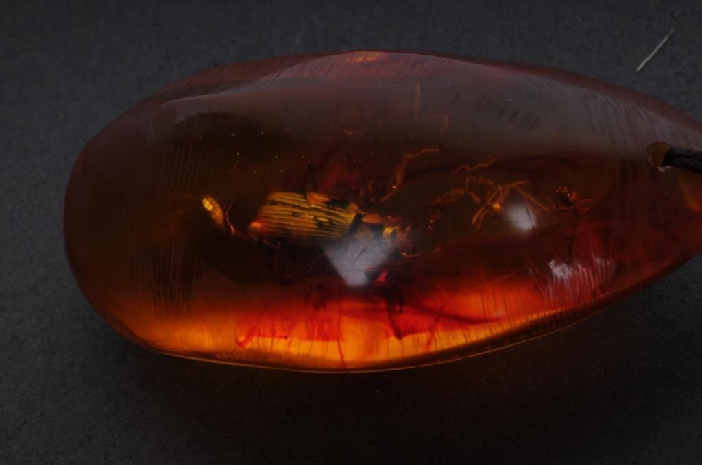 One unique necklace made of lapis, agate, silver beads and decorations with a Amber embedded with a complete insect pendant. Est:$500-1,000.