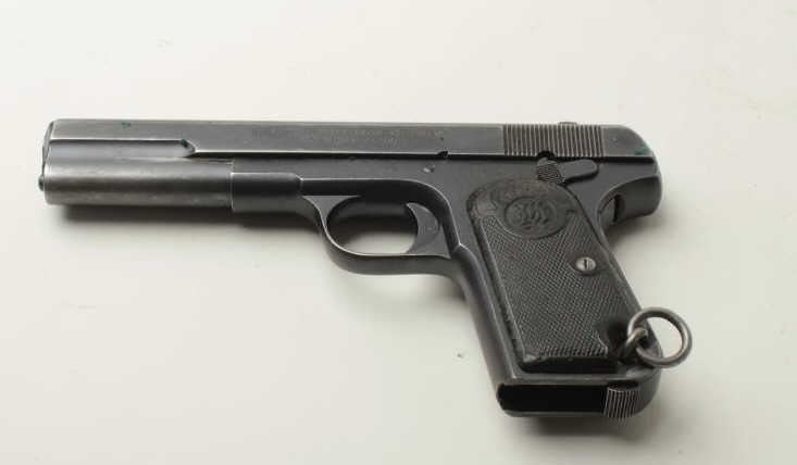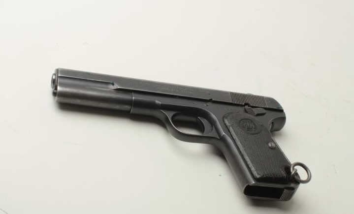 Lot 1199 Husqvarna Model 1907 Semi-Auto pistol, .380 caliber, 5” barrel, mat black finish, checkered hard r