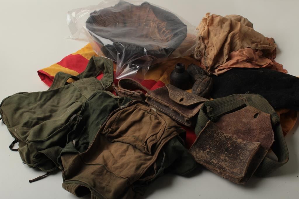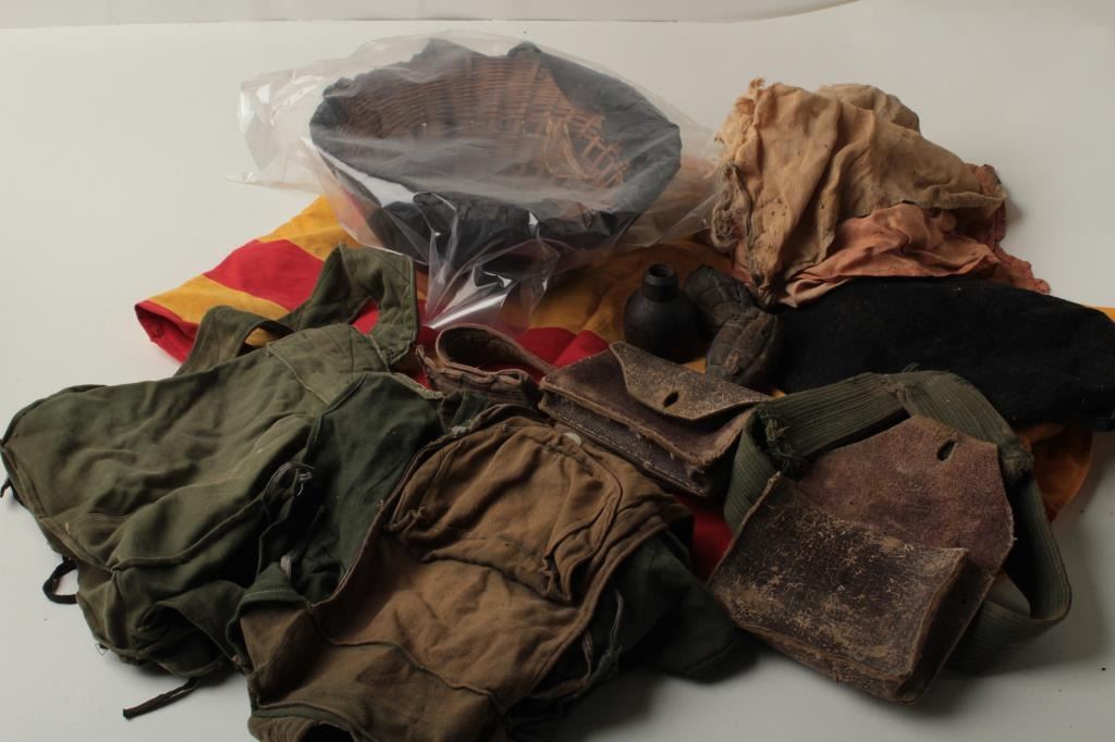 Chinese Type 53 Mosin Nagant bolt action carbine with bayonet, S/N 14799 with woven sling in overall good condition with a good bore, crisp action and good markings including date of 1961. According to the consignor, this piece was aVietnam “bring back”, captured from the NVA with sling showing Regiment in faded writing; accompanied by a straw helmet with partial cover, a South Vietnamese beret, a South Vietnamese flag, home made backpack pouches, misc. other bringback items all recovered and brought home by Colonel Jim Durham, cousin to our consignor and from the Shreveport, LA area; buried at Arlington Cemetery. (C&R). Est.: $300-$600.