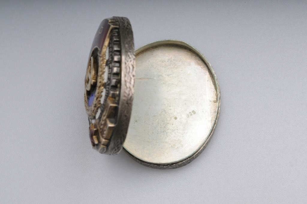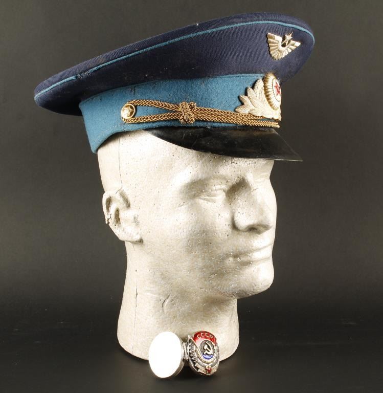Russian Officers silver and gold pillbox with visor cap brought to America by immigrant. The pillbox appears 50 to 75 years old and is of high quality. The visor Is somewhat later probably 1950s to 60s during the Cold War era. The storywas the pillbox contained death pills for the officer who worked in East Germany and in case he was captured. Est.: $250-500
