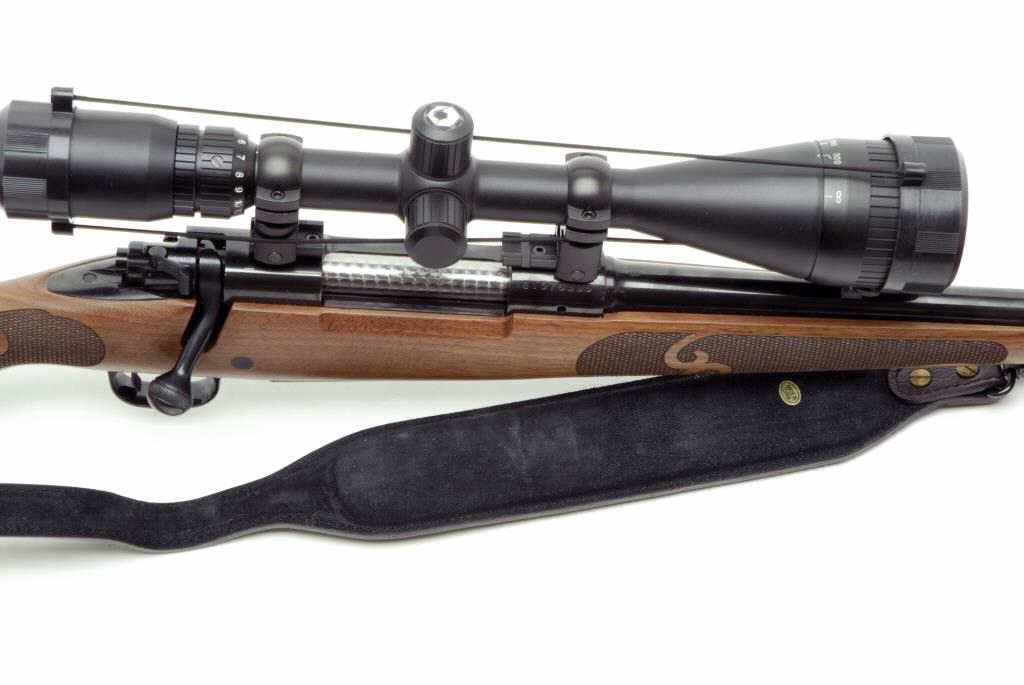 Winchester Model 70 XTR Featherweight bolt action rifle, .270 Roberts caliber, 22” round barrel, S/N G1576395, blued finish, checkered wood stock, leather sling, mounted with a Barska 4-16X50 AO scope with fine optics. This rifle is in like new condition. (Modern/PPT). Est.: $400-$800.