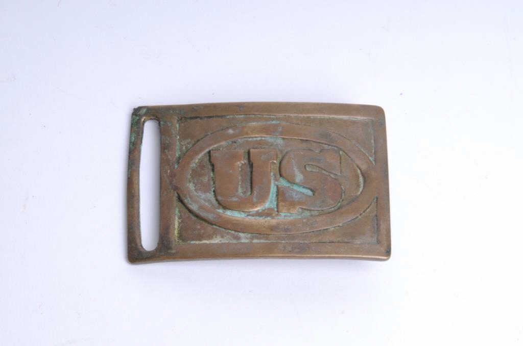 Square brass U.S. buckle, per consignor, dug up from Fredricksburg, PA. Est.: $100-$200.
