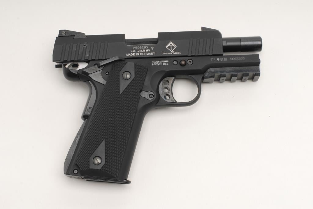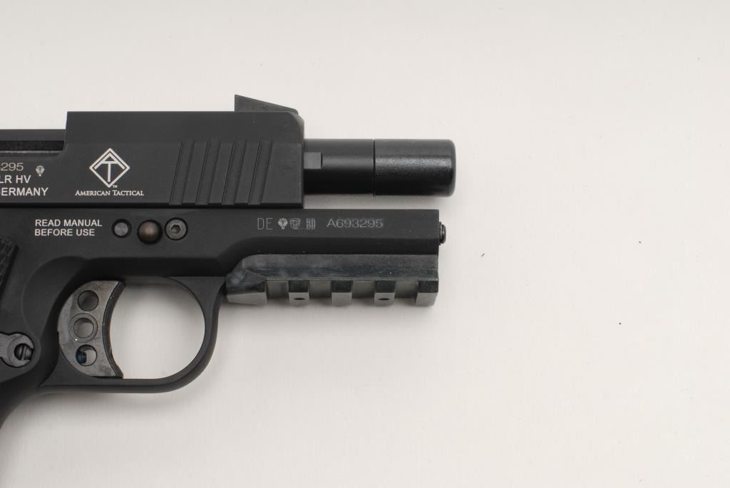 GSG Model 922 CA Semi-auto pistol, .22 L.R., 3 ½” barrel, black finish, checkered grips, S/N A693295. This pistol remains in like new condition showing little handling and no use. Original box included. (CA legal) Est.: $200-$400