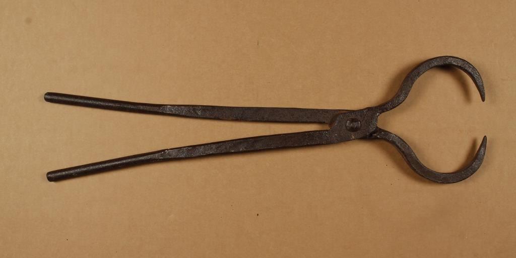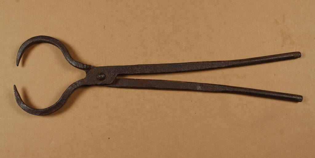 Lot 1303a Large antique blacksmith’s iron tongs approximately 25” in overall length. Est.: $50-$100.