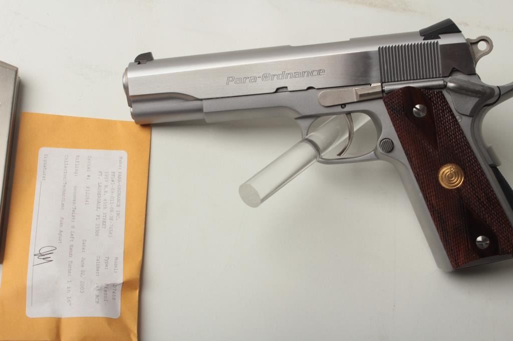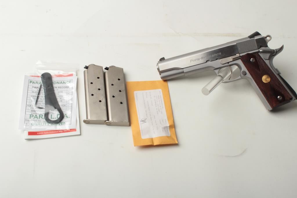 Lot 1353a Para Ordnance 7.45 Semi-Auto pistol in .45 ACP caliber, S/N P122541. Like new in the box with pape