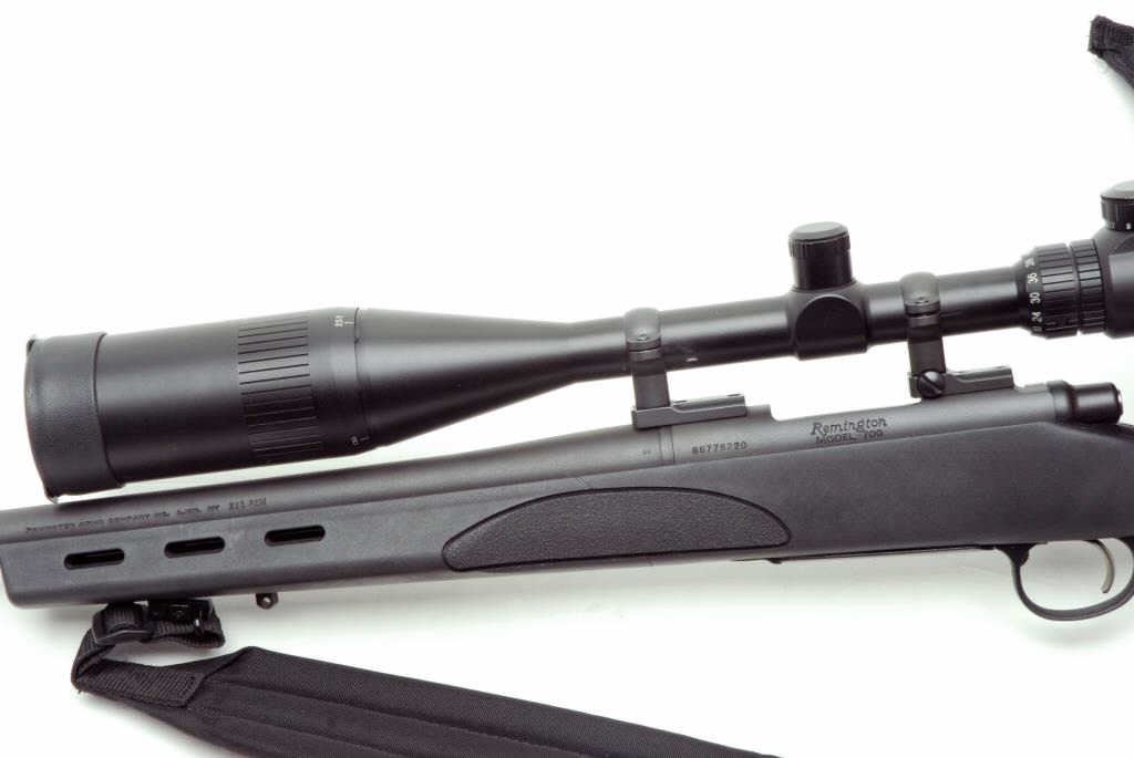 Remington Model 700 bolt action rifle, .223 Rem. caliber, 26” round barrel, S/N G6778220, mat black finish, composite stock, woven sling, mounted with a Target Sports 10-40X50AOE scope with sharp optics. This rifle is in like new condition.(Modern/PPT). Est.: $500-$1,000.