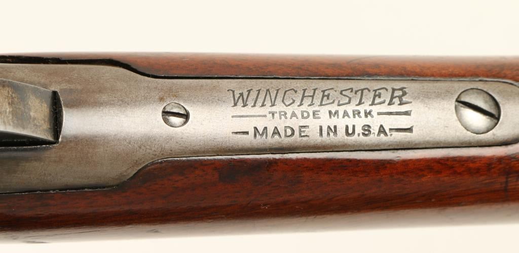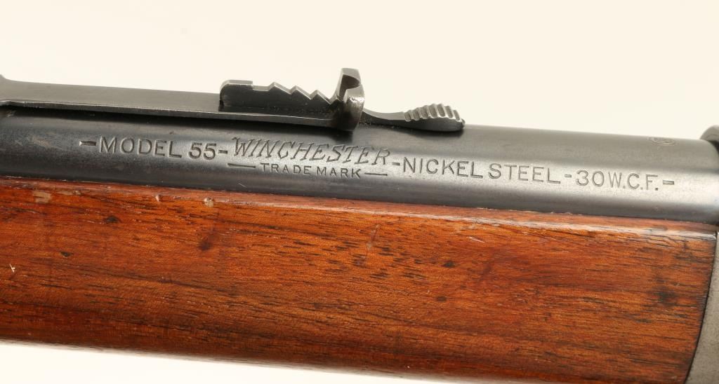 Winchester Model 55 lever action takedown rifle, .30 W.C.F. caliber, 24” round barrel, ¾ magazine, S/N 3515, blued finish, wood stocks in overall very good condition displaying the majority of its original blue on the barrel assembly, crispaction, sharp markings, fine bore and very good stocks with some scattered areas of lost finish to the butt stock and minor scratches from handling and storage. (C&R). Est.: $900-$1,800.