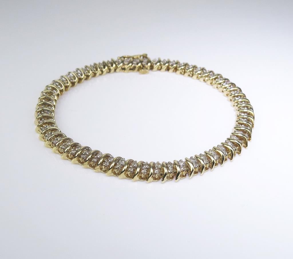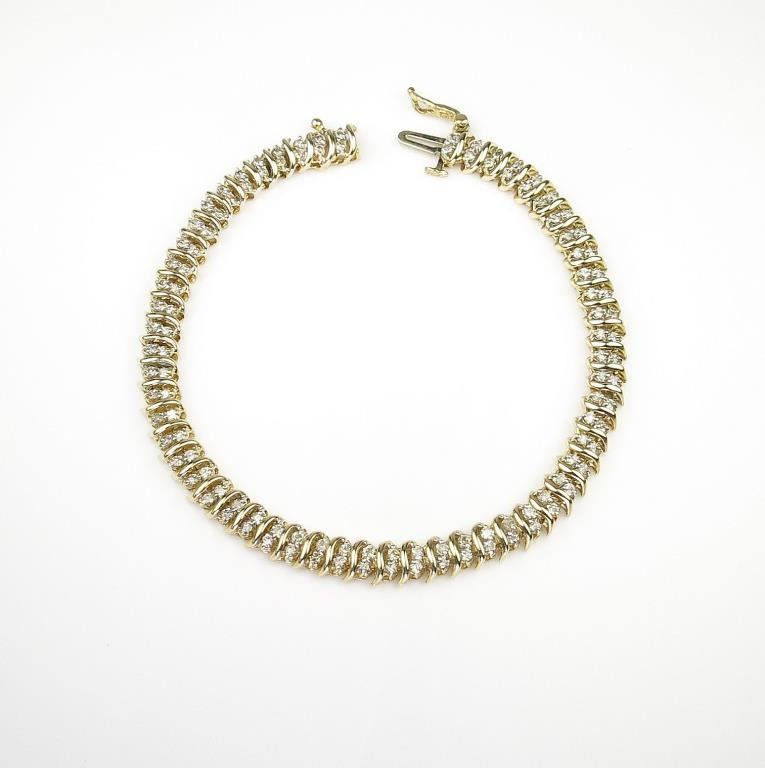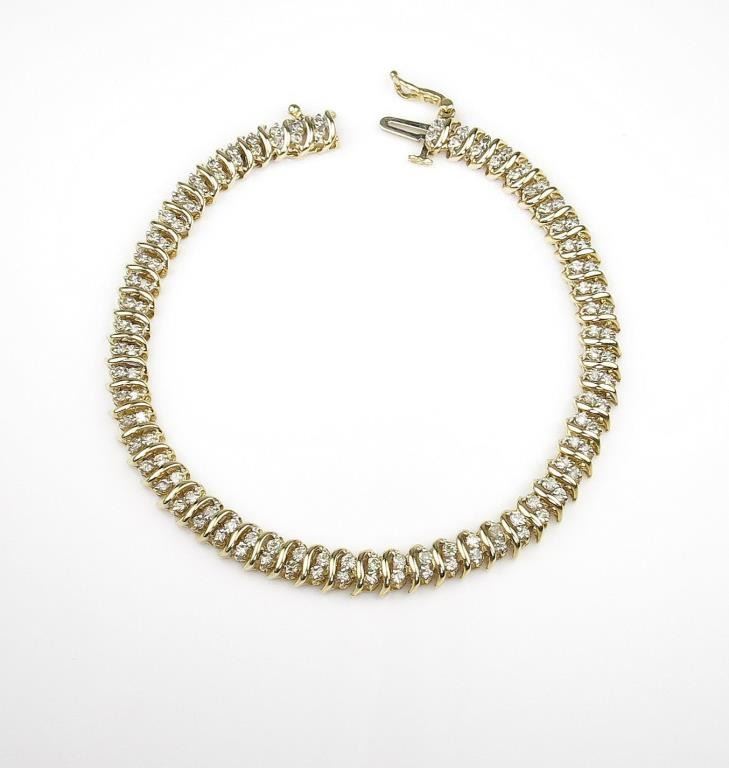 Dazzling ladies diamond bracelet set with 114 round diamonds weighing approx. 2.00- 2.50 carats of H-I colors and SI clarity set in 14 karat yellow gold custom setting. Retail $2,000-$3,000 Estimate $1,500-$2,000