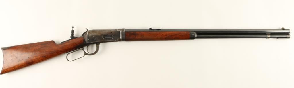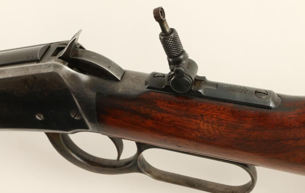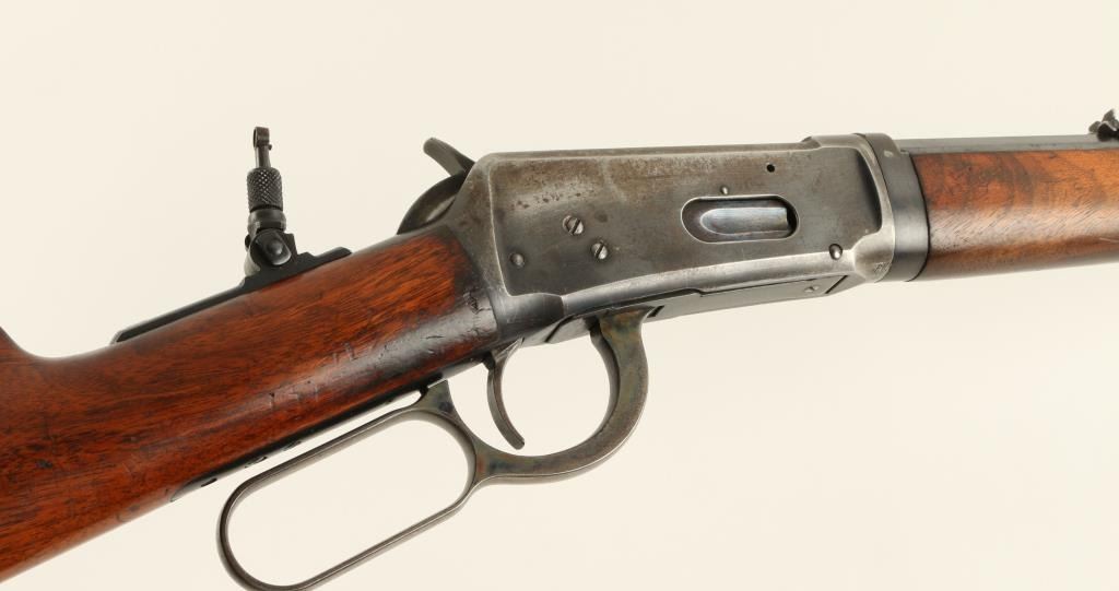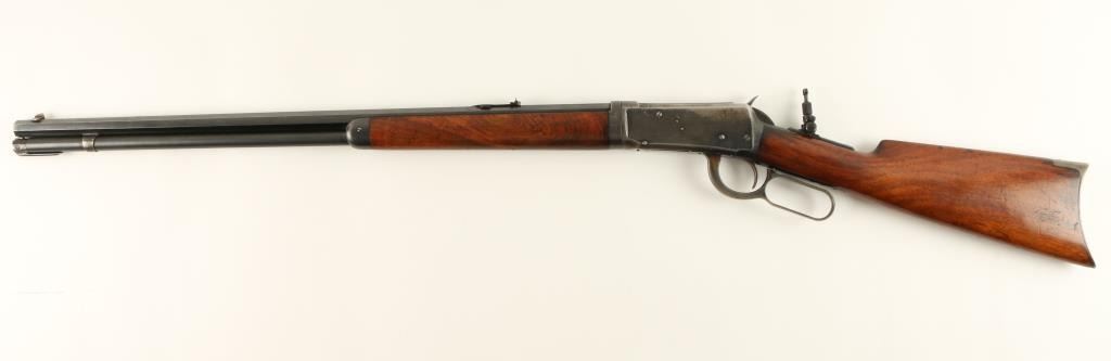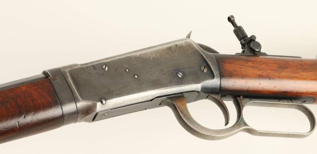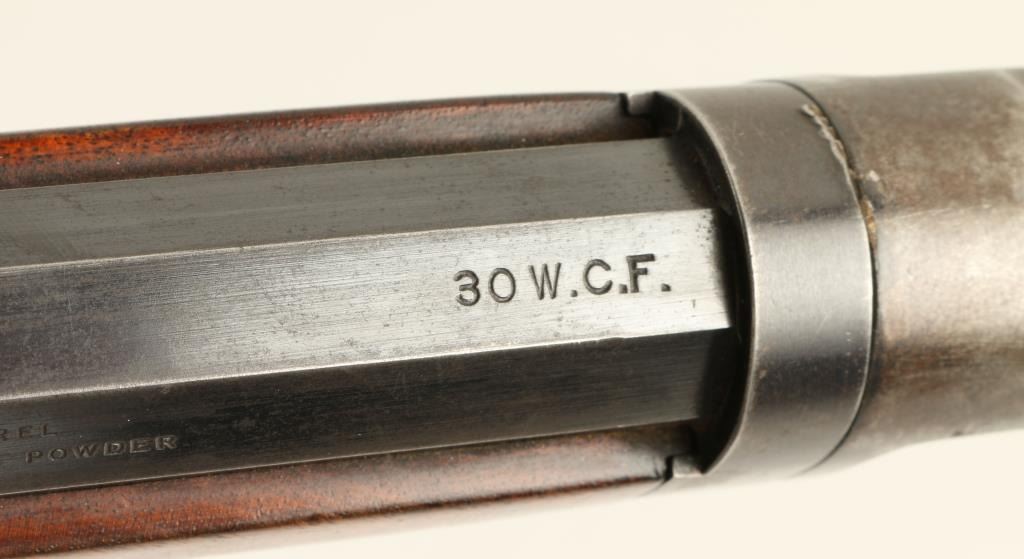Winchester Model 1894 lever action takedown rifle, .30 W.C.F. caliber, 26” octagon barrel, S/N 238547, blued finish, wood stocks, flip-up adjustable Lyman tang sight. This gun is in overall very good to near fine conditiondisplaying the majority of its original finish on the barrel assembly and considerable original blue on the receiver; crisp action, sharp markings and very good bore; stocks are very good + with the forend showing flame graining. (C&R). Est.: $1,400-$2,800.