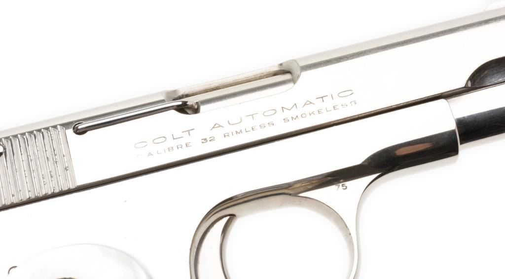 Lot 1402 **Colt Model 1903 semi-automatic pistol, .32 caliber, 3.75” barrel, S/N 481935, nickel finish, thi