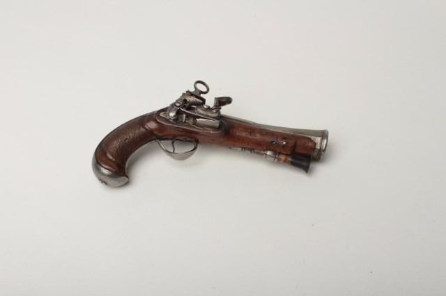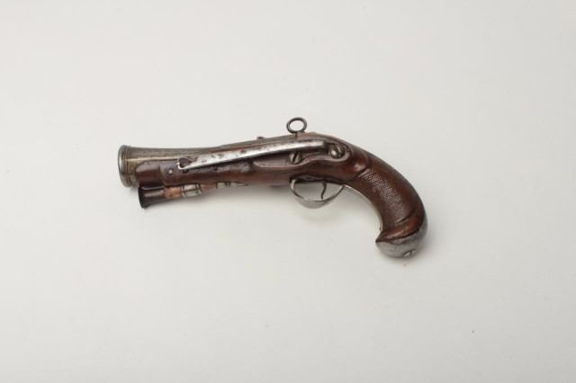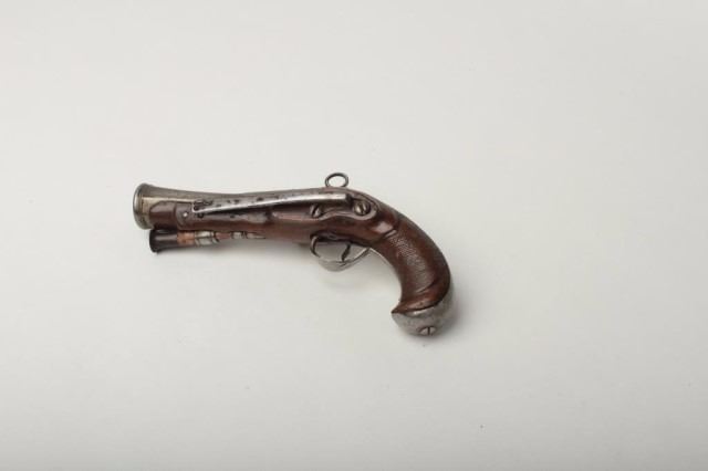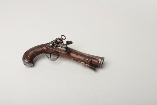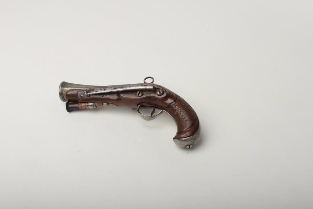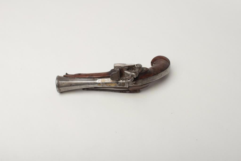 Lot 1410 Spanish Flint Miguelet Blunderbuss Pistol, 1 1/8" bore diameter at flared muzzle, 4 5/8" octagonal