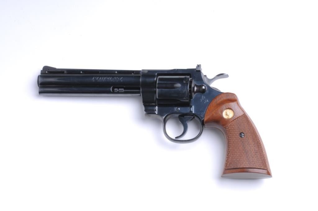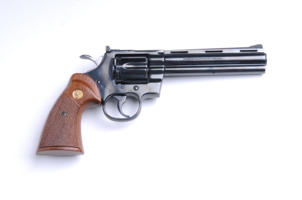 Lot 1419a Colt Python .357 DA revolver with a 6” barrel, blue finish, medallion wood grips, S/N LA2595 with