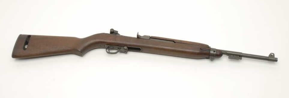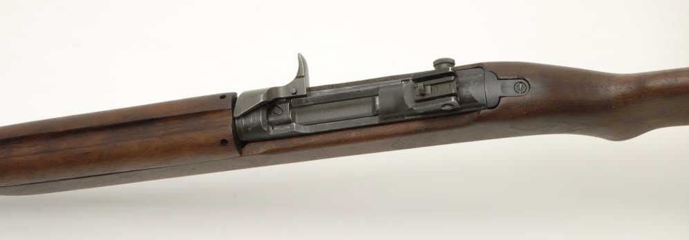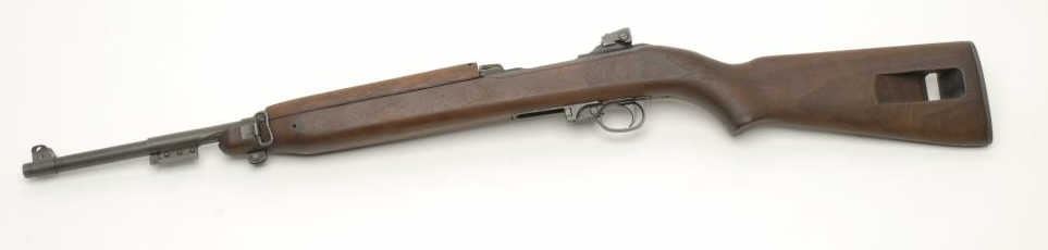 U.S. M1 semi-auto carbine by IBM, .30 cal., 18” IBM marked barrel, receiver, military finish, flat bolt, standard adjustable military rear sight, wood stock, serial #3908023. The gun is in very good overall condition showing significantmilitary finish with a fine bore, crisp action and sharp markings throughout. The barrel and receiver retain nearly all of their military finish with the bayonet lug still present, adjustable rear military sight and sling swivel. The smooth wood military stock is in very good condition with a “SAIW” cartouche in a box on the left side of the stock, a crossed cannons cartouche on the right side of the butt stock and the number 22 stamped at the base of the pistolgrip. The consignor’s attached card indicates the stock as correct Saginaw stock. The butt stock ends with a checkered metal butt plate. There are no visible import markings on this carbine and no magazine is included. (C&R). Est.:$800-$1,600.