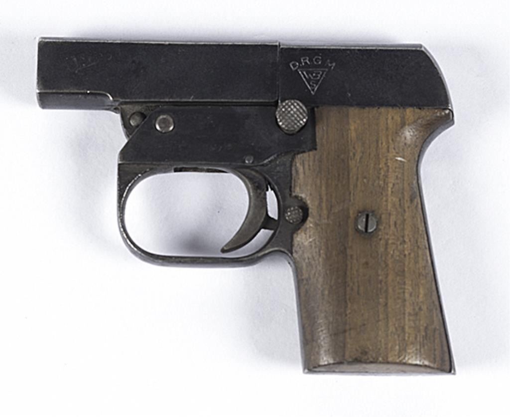 Single shot flare or tear gas pistol. Maker marked WBS. Very good condition. Est:$50-100