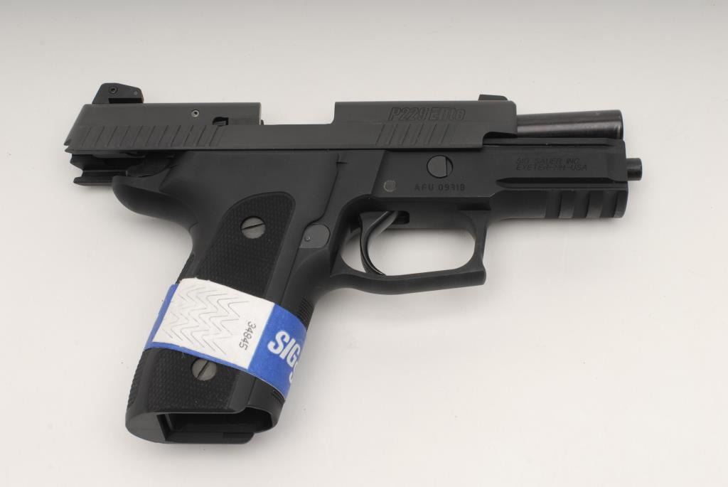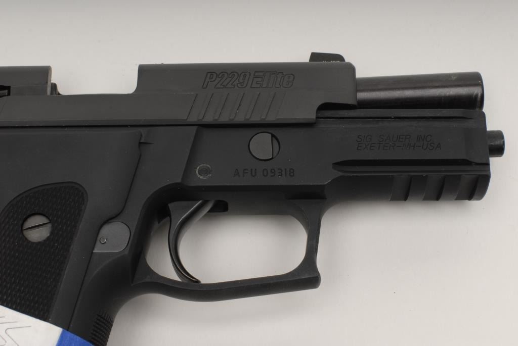 Sig Sauer P226 Elite Semi-auto pistol, 9mm, 4 ½” barrel, Stainless finish, rosewood grips, Short reset trigger, night sights, S/N U865067. This pistol remains in like new condition showing little handling and no use. Original box, manual,and extra mag included. (No CA Sale) Est.: $800-$1600
