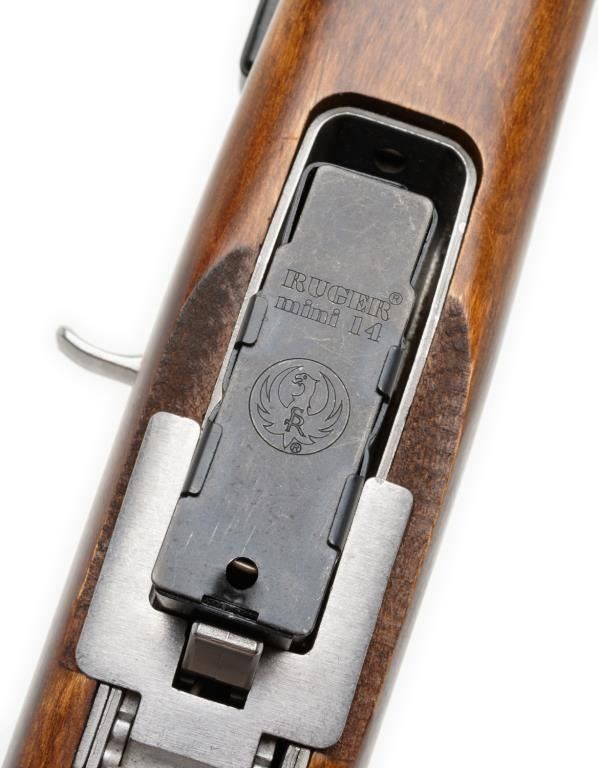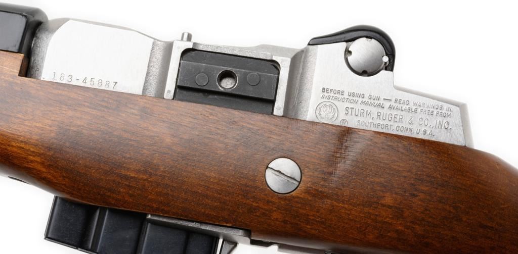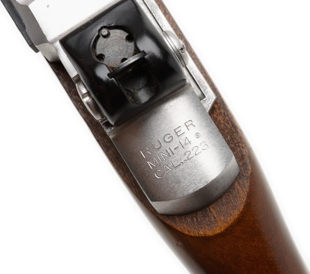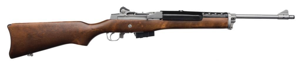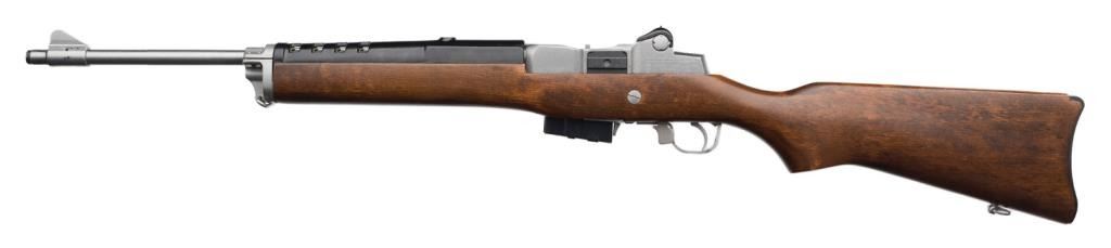 *Ruger Mini-14 semi-automatic rifle, .223 caliber, 18.5” barrel, S/N 183-45887, one magazine, stainless steel, wood stock in overall fine condition. Est.: $600-$800.