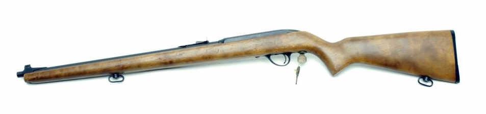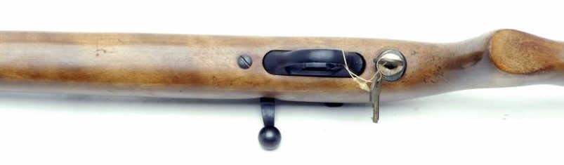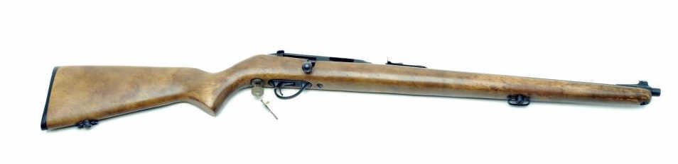 Savage Model 63K bolt action rifle, .22 caliber, 18” barrel, S/N P183477, in overall good + condition showing considerable original muted black finish to metal surfaces, good bore, action, markings and wood with scattered wear and lossesto finish; interesting locking mechanism behind trigger (with keys). (C&R). Est.: $200-$400.