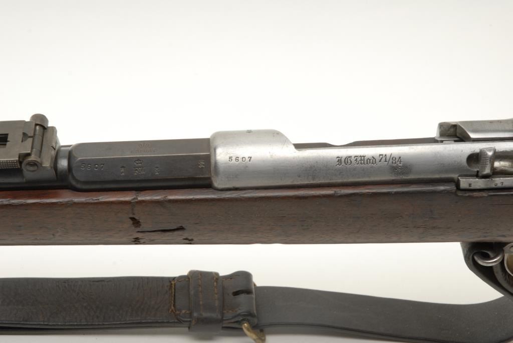 Lot 1600 Mauser Model 71/84 bolt action rifle, receiver dated 1887, 11mm caliber, 32” barrel, S/N 5607, in