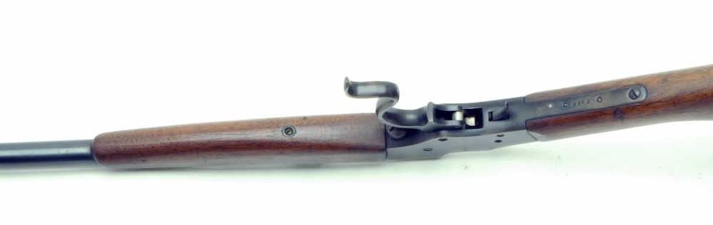 Stevens “Favorite” Model 19 Falling Block Rifle, .32 Long, 24” round barrel, blue finish, wood stock, hard plastic butt plate, S/N D692. This rifle remains in very good overall condition showing majority of its finish remaining and isgoing to a brown patina on the receiver. There is an asterisk on the barrel and frame which might indicate a return to the factory for repairs. The stocks remain in very good condition with the varnish showing some blistering. The action iscrisp and the bore is good. (C&R) Est.: $175-$350
