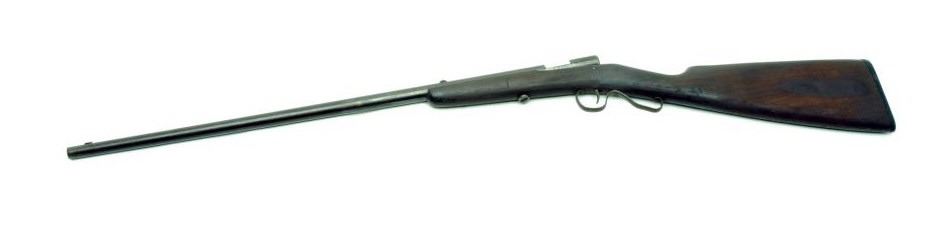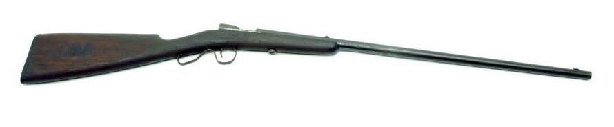 Winchester Model 60A bolt action rifle, missing bolt, .22 short, long or LR caliber, 23” round barrel, wood stock in need of restoration; dark patina to metal surfaces, dark bore, worn and cracked wood stock with carved initial on rightside of butt stock. (C&R). Est.: $100-$200.