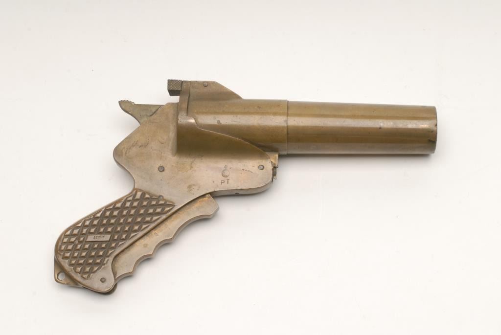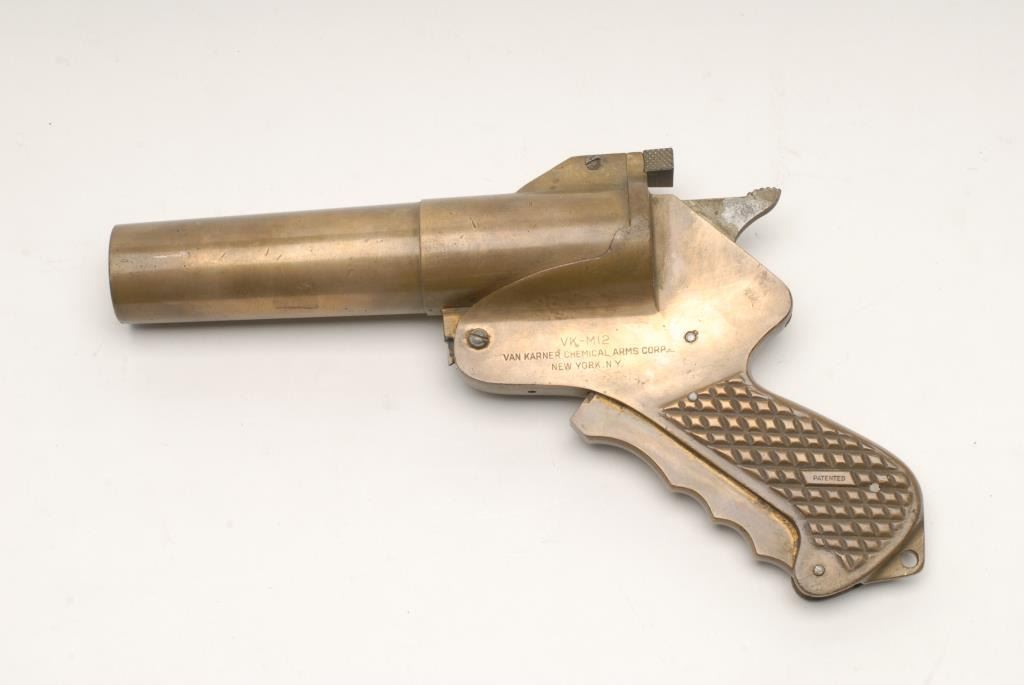 Lot 1628 Van Karner Chemical Arms Corp model VK-M-12 all brass patented flare pistol. Large and near fine.