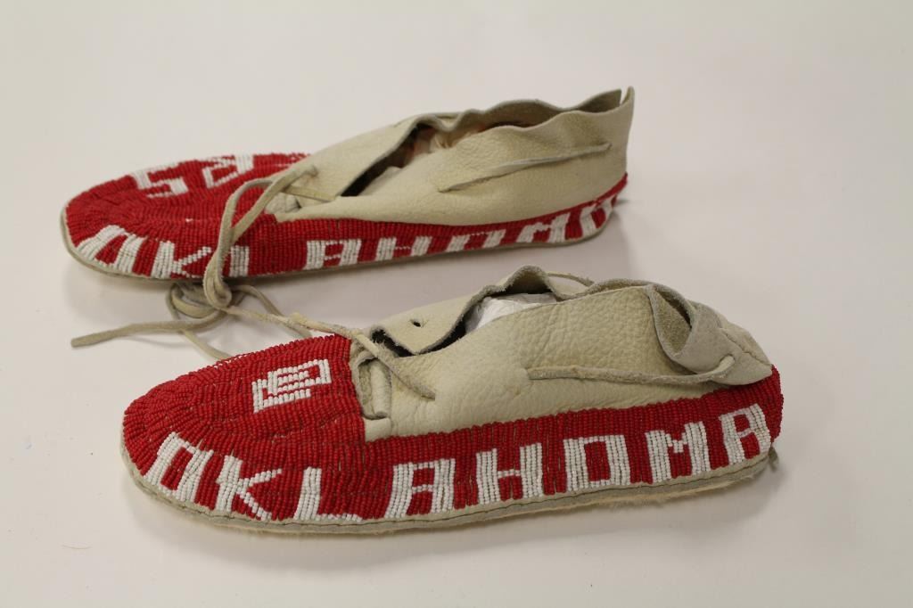 Beaded Moccasins with University of Oklahoma motifs, last 50 years. Est:$150-300