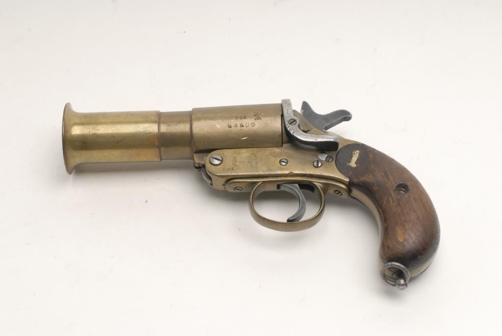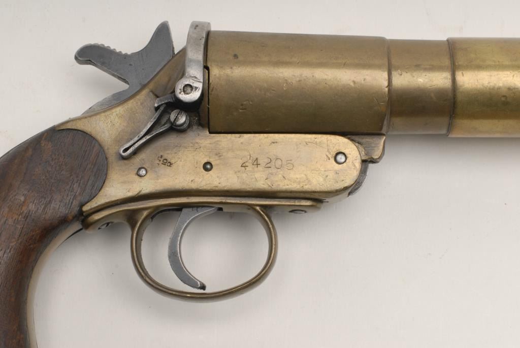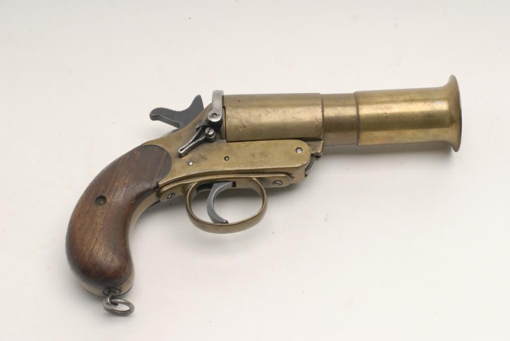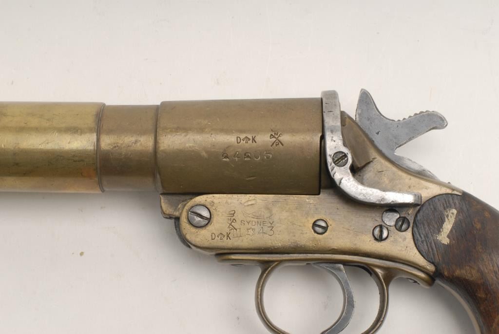 Australian No.1 MKIII brass flare pistol with bell muzzle like blunderbuss. In good to very good condition with readable marks. Est.: $150-$300