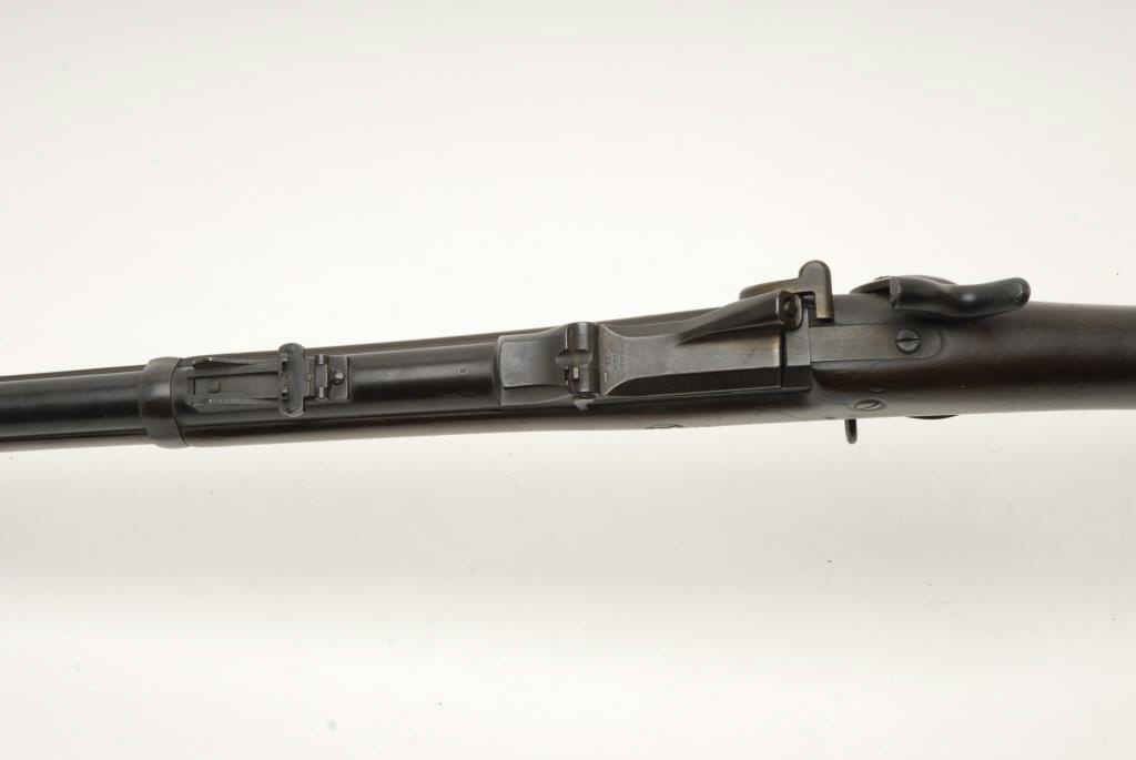 Lot 1655 U.S. Springfield trapdoor rifle, .45-70 caliber, 32.5” barrel, S/N 195250, in overall very good +