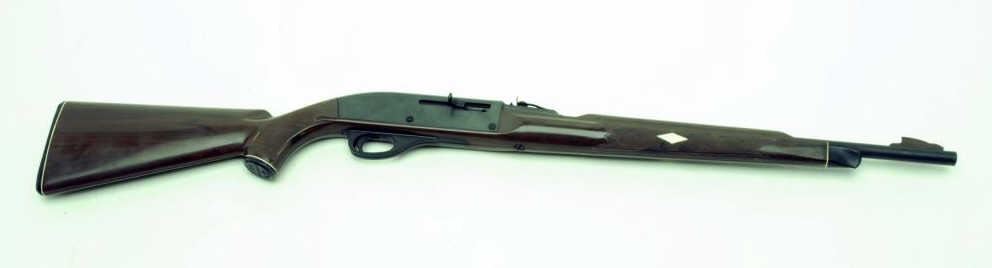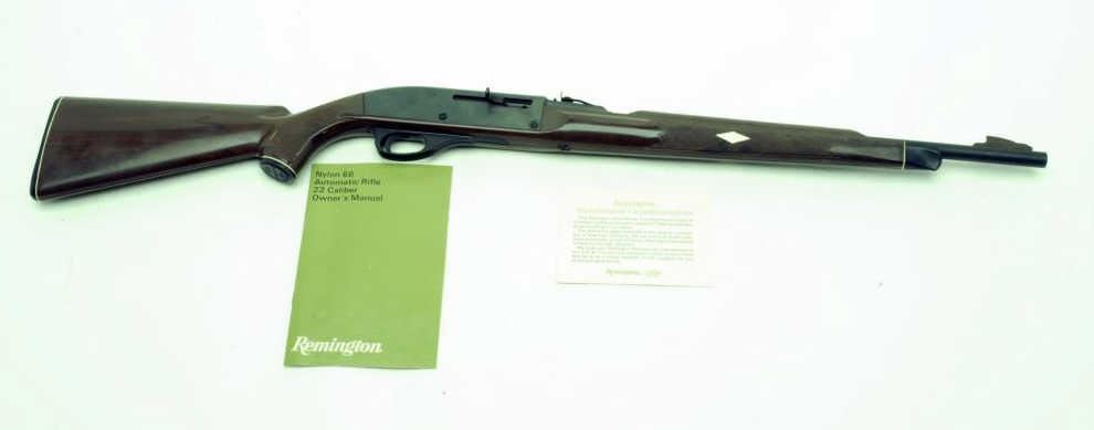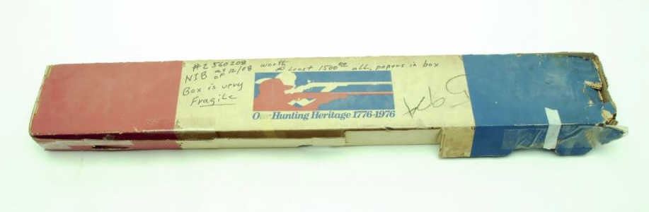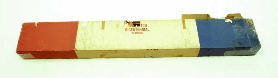 Remington Nylon Model 66 “Mohawk” Bi-Centennial edition semi-automatic rifle, .22LR caliber, 19.5” barrel, blued finish, S/N 2560208, brown nylon stock; in overall fine condition with majority of its original finish, sharp markings, crisp action, fine bore and stock; accompanied by factory cardboard box that shows tattering and losses from storage. (Modern). Est.: $500-$1,000.
