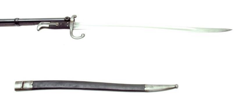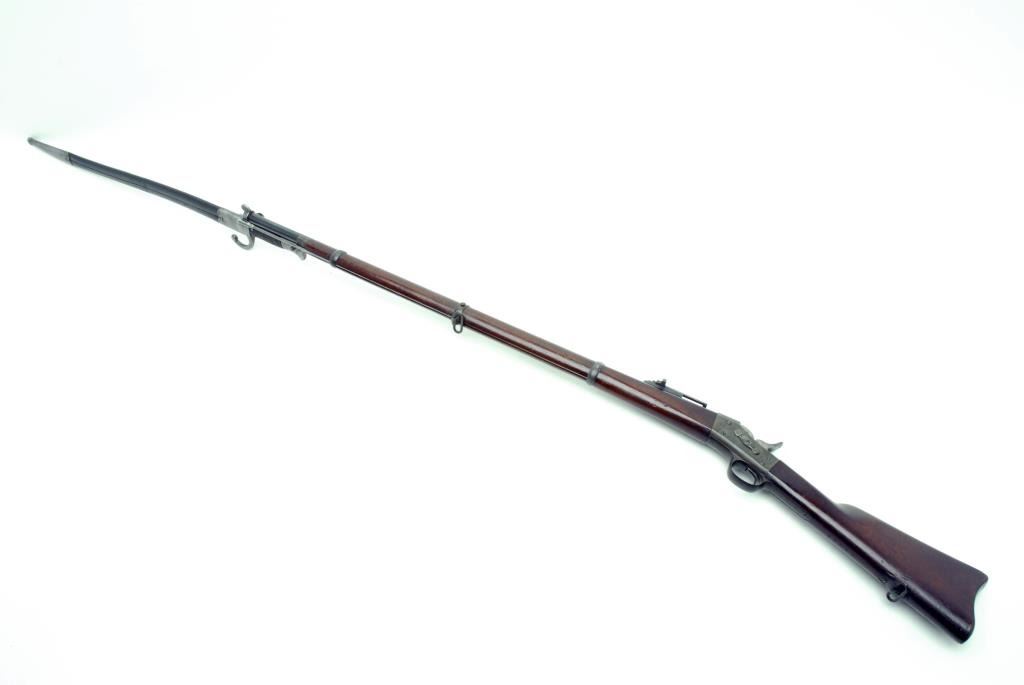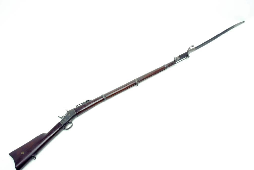 Lot 1667 Danish rolling block Model 1867 single shot musket with bayonet and leather sheath, 11mm caliber,