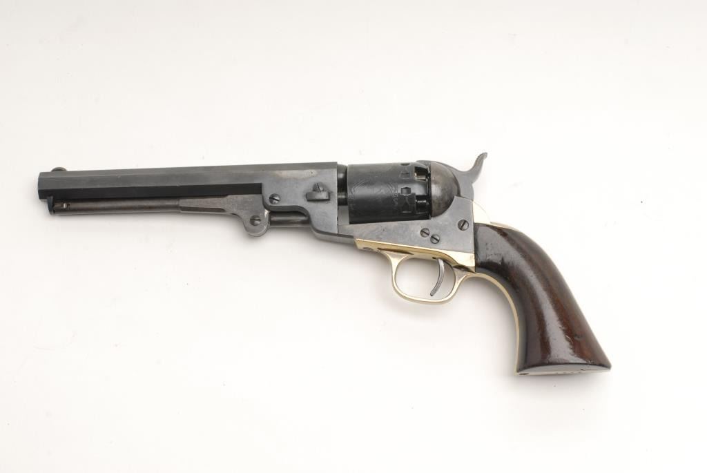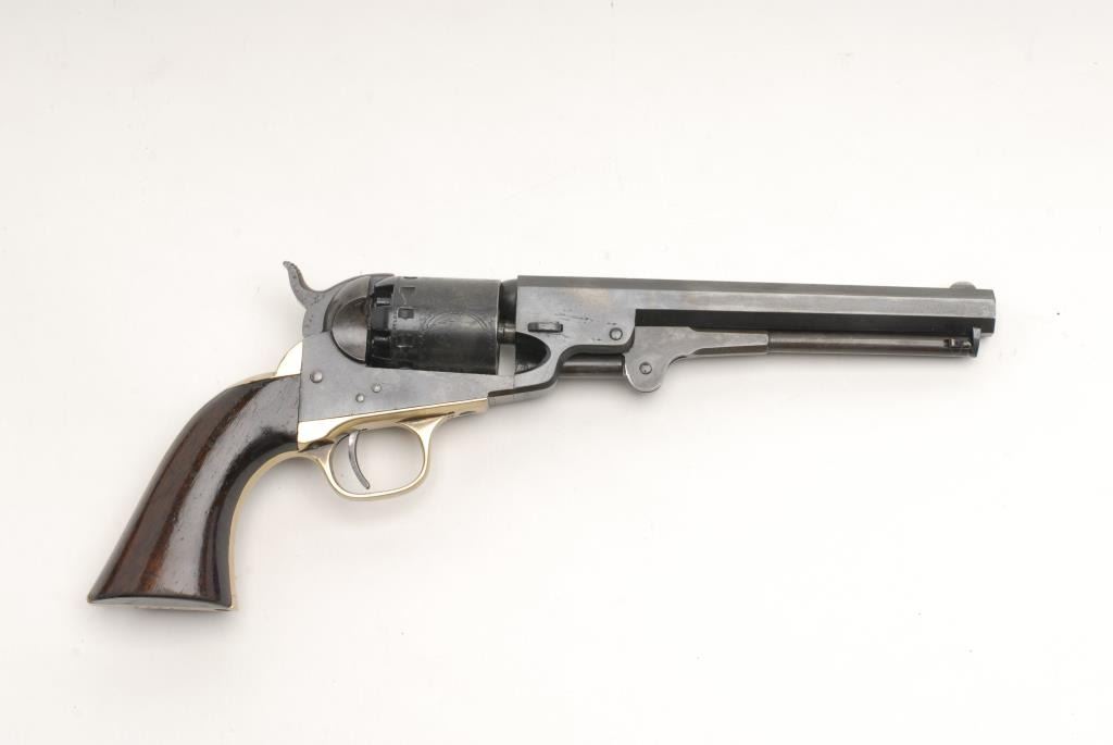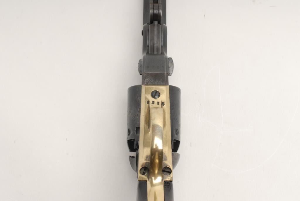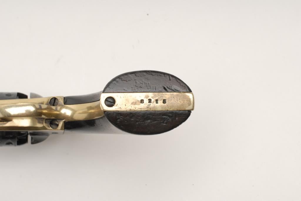 Lot 1672 Manhattan percussion revolver, .36 caliber, 6.5” barrel, brass straps, S/N 8215, showing an excell