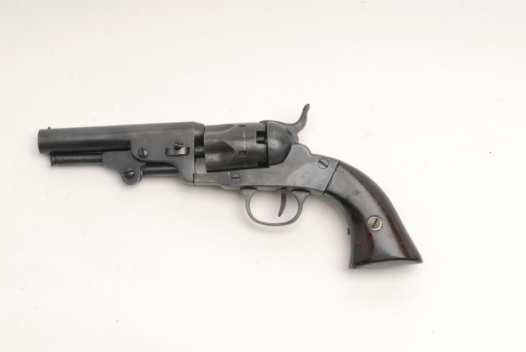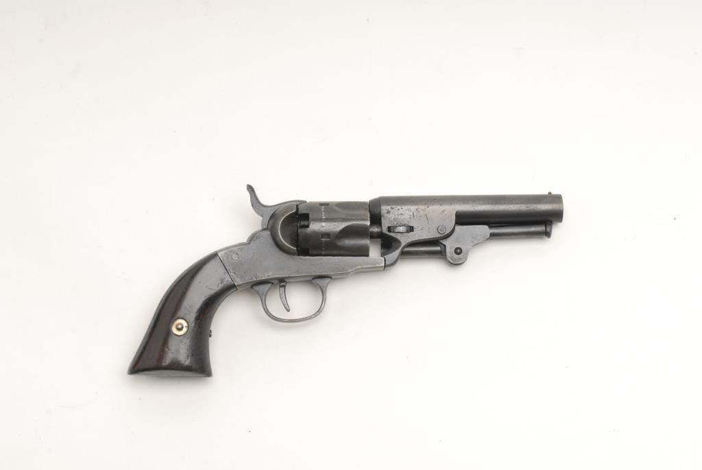 Lot 1673 Bacon percussion pocket revolver, .31 caliber, 4” barrel, S/N 387, in overall good to very good co